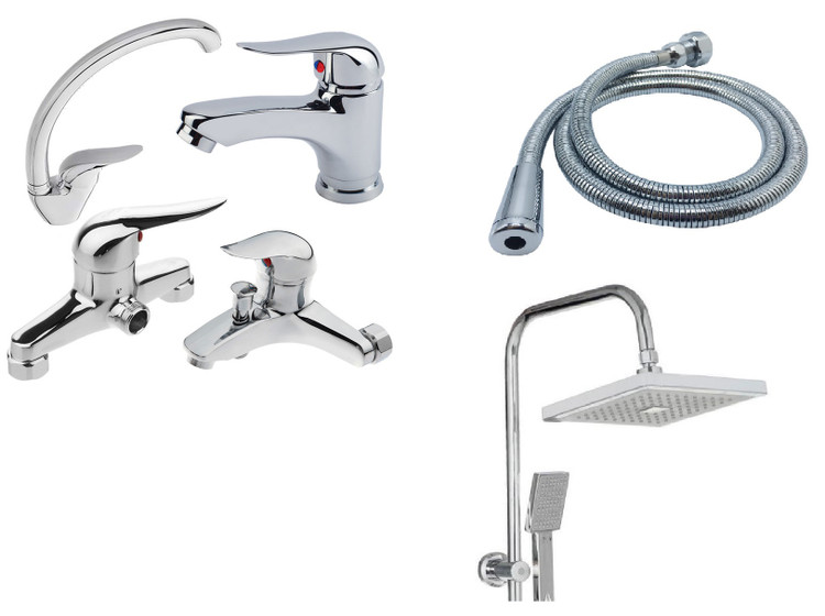 ست 6 تکه شیرآلات اهرمی ،علم دوش و شلنگ توالت
