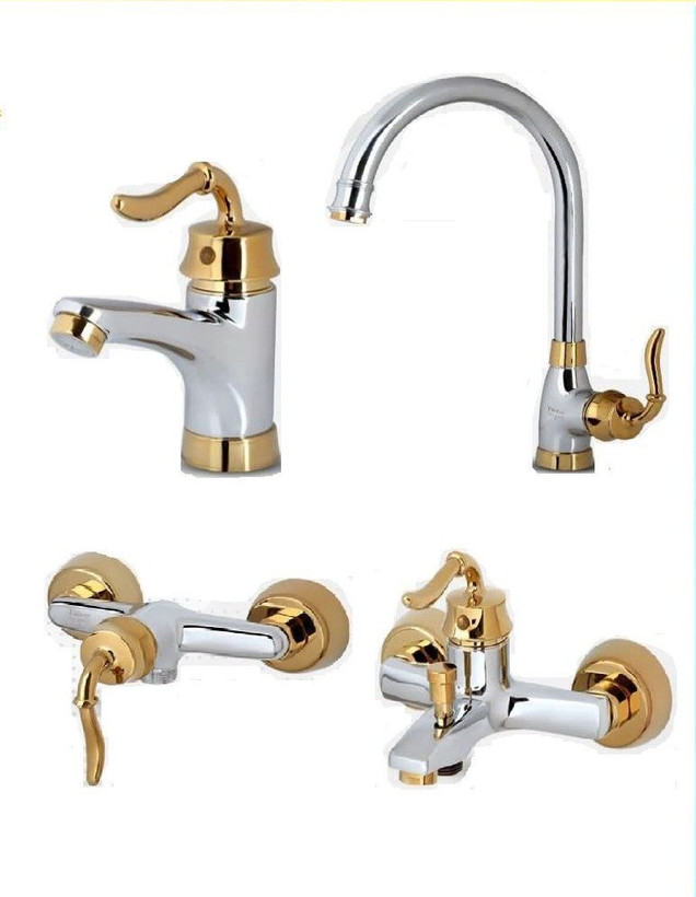 سرویس شیر 4 تکه طوفان فلز مدل لادن کروم طلایی
